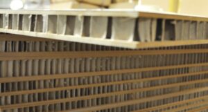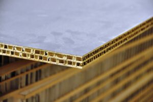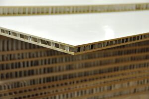 Leichtbauplatten – roh MDF-basierte HDF mit „Waben“ Sandwichplatten und Handys gefüllt.